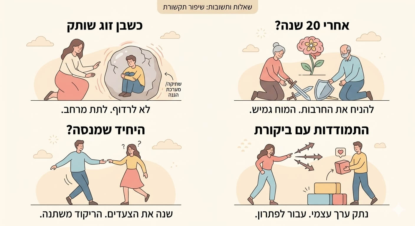 במצבים כאלה, התקשורת יכולה להפוך בקלות לשדה מוקשים. כל הערה נתפסת כביקורת, וכל התרחקות נתפסת כנטישה.